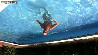 06:29Loris blackhaired teenie swirling in the pool
